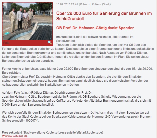 Wortlaut der Pressemitteilung mit Foto der Stadt Koblenz, 13.07.2010
