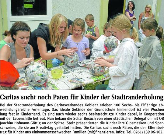 Auszug aus dem Wortlaut und den Fotos der Presse-Information des Caritasverbandes Koblenz e.V. 14.07.2010: