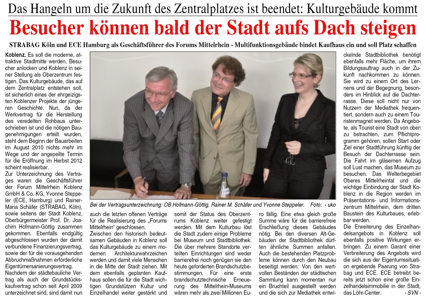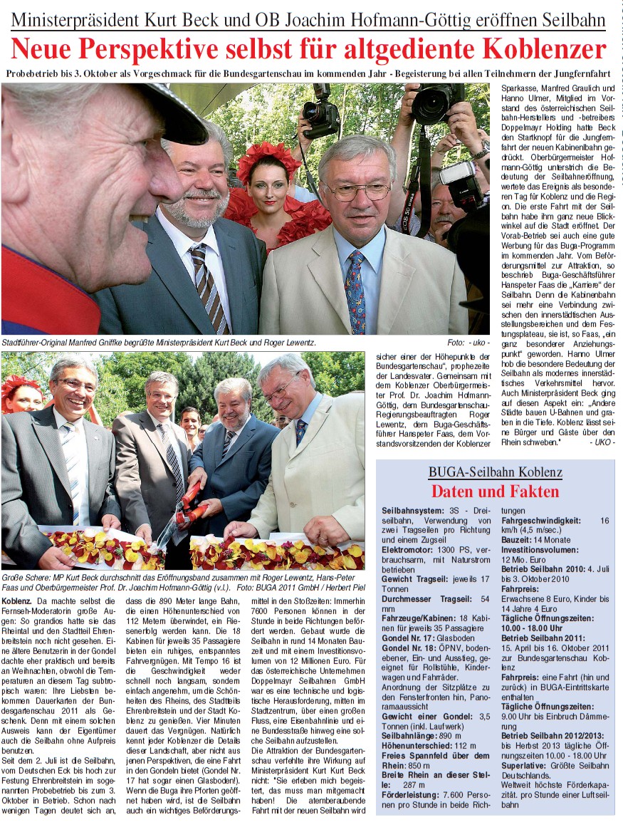Wortlaut und Fotos der Presseinformation der Stadt Koblenz 09.07.2010