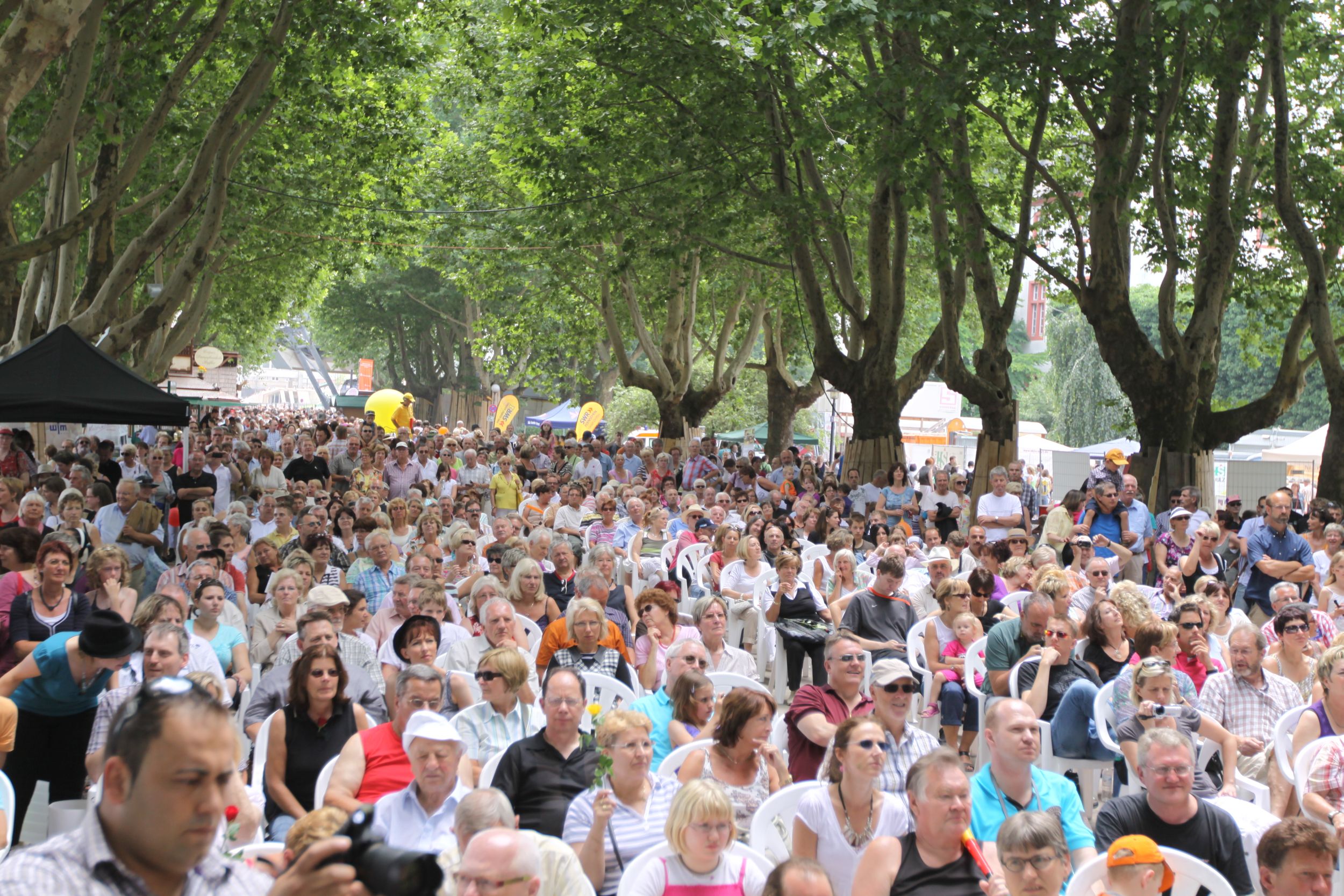 KOBLENZ (pm). Als hätte eine Zeitmaschine das Rad um ein Jahr weitergedreht und wäre bei einem wunderschönen Sommertag auf der Bundesgartenschau Koblenz 2011 stehengeblieben: So empfanden es die rund 10.000 Besucher des 3. BUGA-Baustellenfestes, das am Sonntag zwischen dem Deutschen Eck und der Talstation der Seilbahn an der Rheinpromenade stattfand und das schon sehr viel Gartenschau-Flair vermittelte. Neben der an diesem Tag neu eröffneten und ständig umlagerten Seilbahn sorgten eine Fülle von musikalischen und optischen Leckerbissen auf der Bühne, Mitmachangebote, kulinarische Köstlichkeiten, Informationen an den Ständen und auf den Baustellen sowie schöne Pflanzflächen für sehr viel gute Laune bei Jung und Alt. Stark umjubelt war auch die Endausscheidung um den BUGA-2011-Song, bei dem sich die Formation „Leslie, Mannix und Kids“ mit ihrem Lied „Koblenz“ gegen fünf weitere Finalisten durchsetzen konnte.