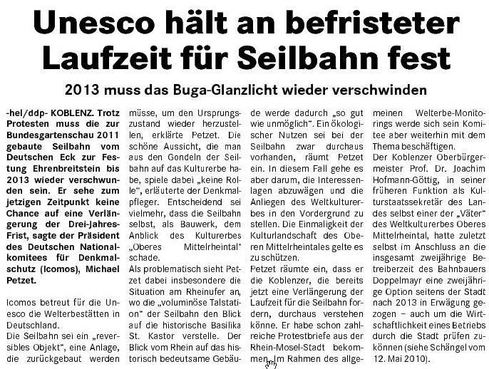 Wortlaut und Foto der Presseinformation der Stadt Koblenz 06.07.2010