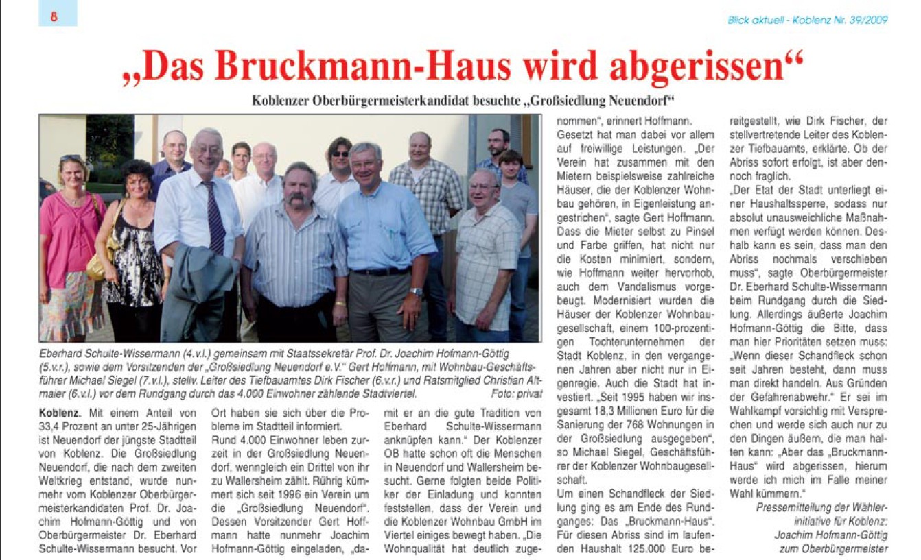 Montag 28. September 2009: Koblenz-Termine des zukünftigen OB Hofmann-Göttig (ansonsten Termine in Mainz):
