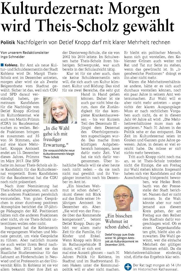 Zur anstehenden Neubesetzung des Koblenzer Kulturdezernats