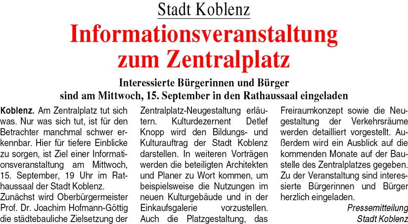 15.09.2010: Für Interessierte informiert OB Hofmann-Göttig über Koblenzer Zentralplatz