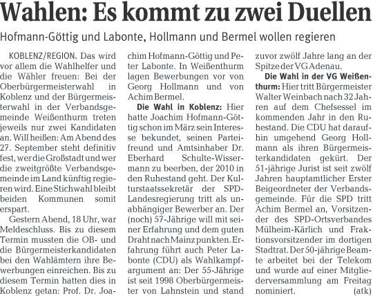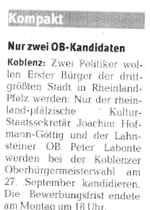 Ende Bewerbungsfrist: Zwei Koblenzer OB-Kandidaten für die Wahl 27.09.2009