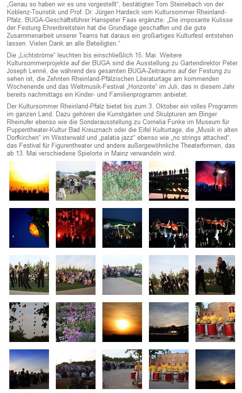 Die Eröffnung des rheinland-pfälzischen Kultursommers 2011 auf der Koblenzer BuGa: Ein voller Erfolg mit fast 25.000 Gästen