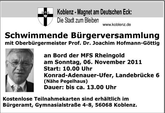 06.11.2011: Schwimmende Koblenzer Bürgerversammlung mit OB Hofmann-Göttig