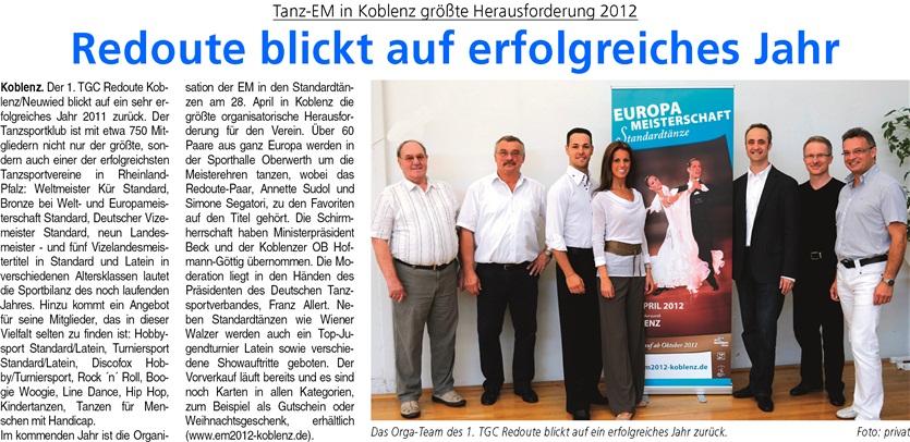 Tanz-Europameisterschaften in Koblenz 2012: Schirmherrschaft Ministerpräsident Beck und OB Hofmann-Göttig