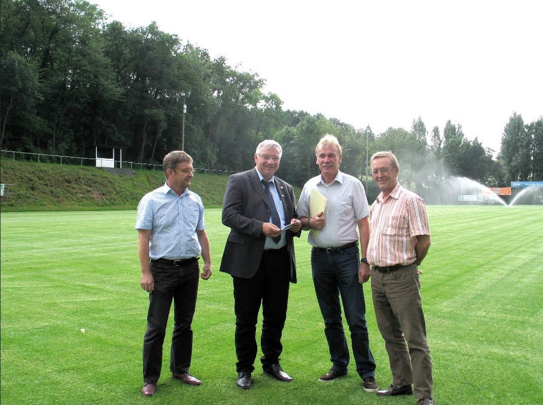 (Koblenz: 10.08.12) „Viele ärgern sich über das Wetter, nur wir nicht“, begrüßte der Vorsitzende des Sportvereins TuS Germania Arenberg Ludwig Reinemann Oberbürgermeister Prof. Dr. Joachim Hofmann-Göttig. Der OB ließ sich von den Vereinsoberen guten Zustand des neu angelegten Rasenplatzes zeigen, der Ende September mit einem Fußballspiel eingeweiht wird.