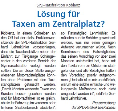 Für Taxen am Koblenzer Zentralplatz ist neuer Standort notwendig