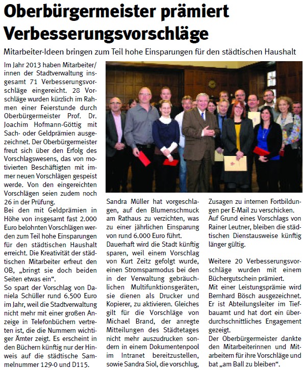 OB Hofmann-Göttig prämiert Verbesserungs-vorschläge aus Koblenzer Stadtverwaltung