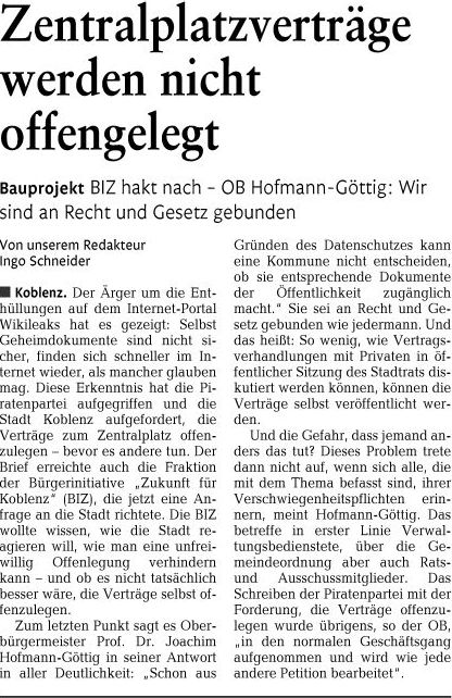 Auszug aus dem Wortlaut der Presseinformation der Stadt Koblenz, 03.01.2011:
