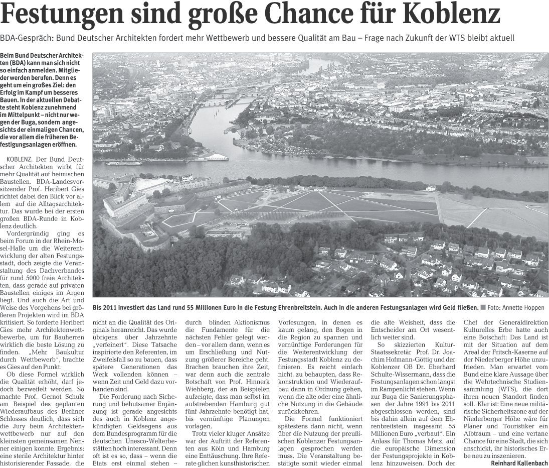 Die Formulierung konkreter und visionärer Ziele und deren Integration in einen übergeordneten und lebendigen Masterplan ist der Beginn eines neuen Anspruchs und einer neuen Qualität für Koblenz.”