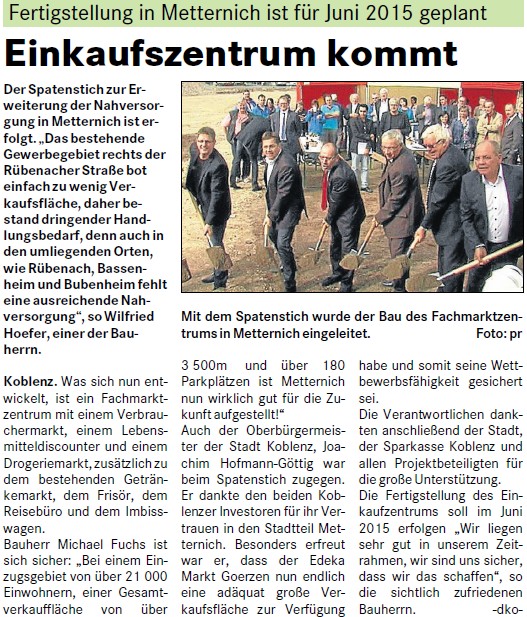 Auszug: Rhein-Zeitung, Koblenz, 28.10.2014, S. 11