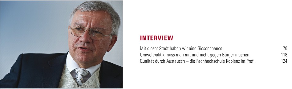 Für uns von der Stadtverwaltung war dies ein Jahr, in dem das Erfreuliche überwog, viele positive Entscheidungen für die zukünftige Entwicklung unserer Stadt gefällt wurden. Wir erinnern uns an wichtige Ereignisse wie den Fortschritt der Arbeiten für das Jahrhundertereignis hier in unserer Stadt, der Bundesgartenschau im kommenden Jahr. Auch bei dem Sanierungsgebiet Zentralplatz ist in diesem Jahr vieles erreicht worden: Mit dem Abrissbeginn im August 2010 sind wichtige Meilensteine auf dem Weg bis zur Fertigstellung des neuen „Forums Mittelrhein“ auf dem „alten“ Zentralplatz im Jahr 2012 erreicht worden.