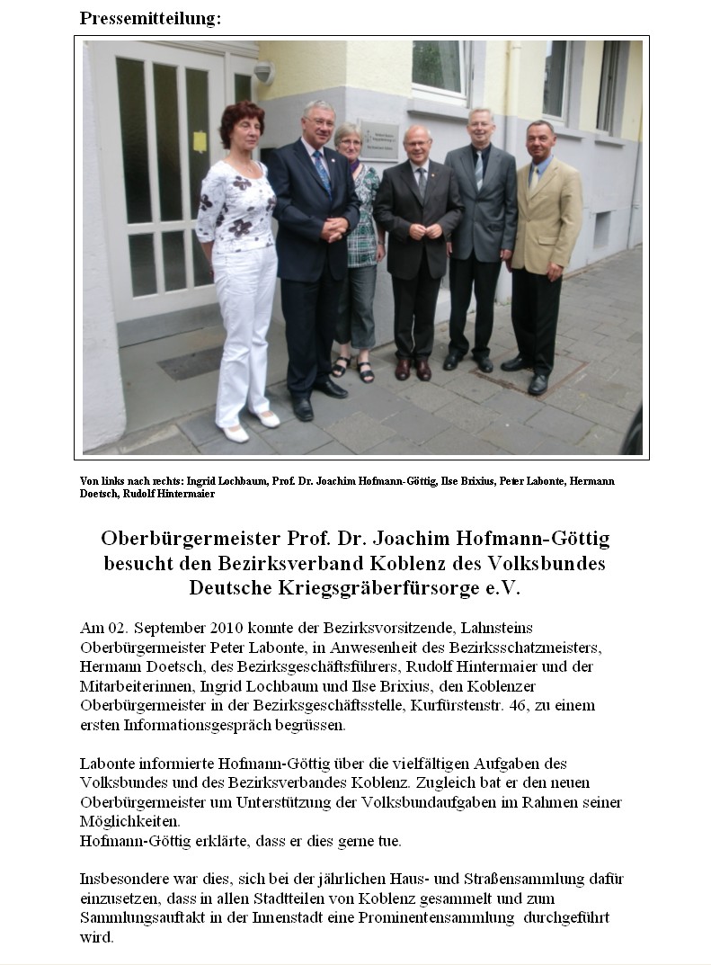 Pressemitteilung des Volksbunds Deutsche Kriegsgräberfürsorge e.V., Bezirksverband Koblenz, Ingrid Lochbaum, 02.09.2010: