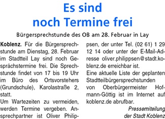 Mittwoch 22.02.2012: Auszug aus Terminen von OB Hofmann-Göttig (ansonsten weitere Termine in Koblenz):